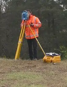 En totalstation står typisk på et treben (stativ), skal sigte til et prisme, reflekterende tape eller faste objekter (afhængig af hvor avanceret udstyret er), og kan i nogle tilfælde fjernbetjenes.
