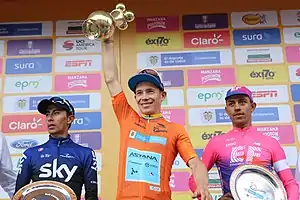 | Podiet ved Tour Colombia 2019 (fra venstre Iván Sosa, Miguel Ángel López og Daniel Martínez). | |||
