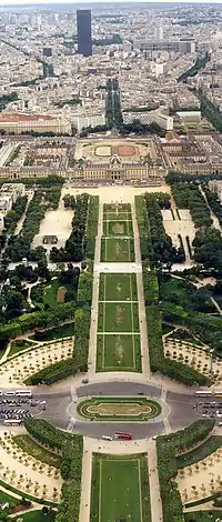 Udsigt fra øverste platform i Eiffeltårnet. Tour Montparnasse er den skyskraber, der ses i overkanten af billedet