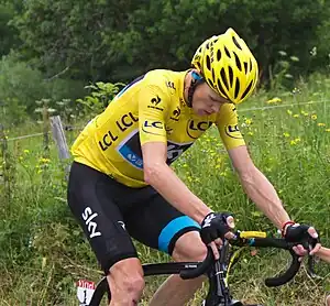 • På 20. etape, bar Pierre Rolland, der var nummer 2 i bjergkonkurrencen, Den prikkede bjergtrøje, fordi Chris Froome (på førstepladsen) bar Den gule trøje som nummer 1 i Den samlede stilling, på etapen.