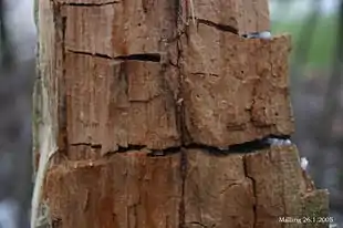 Ofte ser man, at forskellige insektlarver lever inde i det trøskede ved, og de får skyld for at være sygdommens årsag, men det forholder sig lige omvendt: at larverne kun kan leve af det ved, som allerede har været forbehandlet af svampene. I næste omgang bebrejder man spætter og spætmejser, at de hugger huller i veddet, men det gør de kun, fordi veddet rummer larver, som de fjerner.