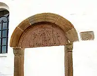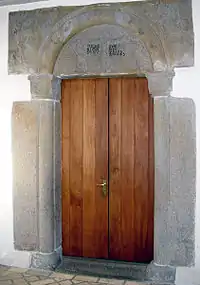 Kirken har et romansk kor og skib. De er opført i granitkvadre med marksten indvendigt. De to døre (den nordre er tilmuret) er forsynet med udsmykkede granitportaler. Syddørens overligger viser en korsfæstelsesscene med (ifølge indskrifter på overliggeren) ærkeengelen Michael ved Jesu højre side og apostelen Johannes på venstre side. Over norddøren er der et tympanon med en korsnedtagelsesscene. Ved siden af tympanet er der en granitkvader med en løve, der bider sig selv i halen.