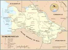 Jernbanen starter ved den østlige kyst af Kaspiske Hav ved Turkmenbashi (Krasnovodsk) og går mod sydøst, langs kanten af Karakum-ørkenen. Det vigtige knudepunkt på rute- og lokomotivførestedet ligger i Bereket by (tidligere Gazandjyk) omkring 340 km mod øst. Også på dette tidspunkt skærer den trans-kaspiske jernbane den nybyggede nord-syd-tværnationale jernbane, der forbinder Rusland, Kasakhstan, Turkmenistan, Iran og slutter ved den Persiske Bugt. Efter Bereket løber ruten parallelt med Karakum-kanalen. Den passerer gennem Ashgabat (Ashkhabad) og fortsætter mod sydøst, følger Kopet Dagh-bjergene og passerer gennem Tejen. Ved Tejen afgrener en moderne jernbaneforbindelse ud til den iranske grænse ved Serakhs og derfra til Mashhad i Iran. Fra Tedzhen leder Den Trans-kaspiske jernbane nordøst gennem Mary (Merv), hvor en grenlinje bygget i 1890'erne fører til den afghanske grænse ved Serhetabat, og hovedlinjen fortsætter til Turkmenabat (Chärjew). Derfra forbinder en gren bygget i sovjetperioden nordvest mod Urgentj og videre til Kasakhstan og Rusland.
