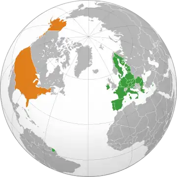 TTIP forhandles mellem USA (orange) og EU (grøn).