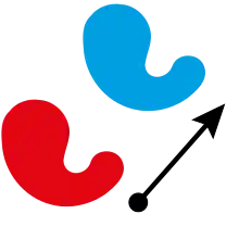 Hvert punkt i den røde figur flyttes i samme retning og samme afstand for at overlappe med den blå figur. Dette er en translation.