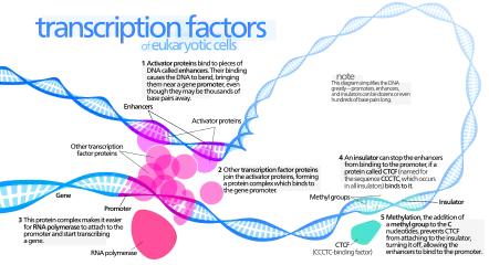 - rekruttering af coactivatorer eller corepressor-proteiner til transskriptionsfaktor-DNA-komplekset (se billedet).