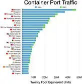 - "Top 50 World Container Ports | World Shipping Council". www.worldshipping.org. Arkiveret fra originalen 2012-07-04. Hentet 2019-10-16.