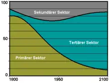 Den stadigt fremadskridende automatisering inden for den primære og den sekundære sektor indebærer et stadigt faldende behov for arbejdskraft inden for disse sektorer, idet automatiske maskiner indtager en stadigt mere fremherskende rolle. Derved frigøres atter arbejdskraft, som nu voksende efterspørges i den tertiære sektor: tjenesteydelser. Denne samfundstilstand er den, som findes i moderne, højt industrialiserede samfund og som vil vinde stadigt mere frem i fremtiden. Allerede ved indgangen til det 21. århundrede er den tertiære sektor i mange lande vokset til en størrelse, hvor man er begyndt at udskille informationsvirksomhed som en "fjerde sektor" og ikke-indkomstrettet virksomhed som en "femte sektor".
