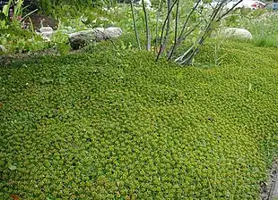 Højde x bredde og årlig tilvækst: 0,05 × 0,50 m (1 × 5 cm/år). Disse mål kan fx bruges til beregning af planteafstande, når arten anvendes som kulturplante.