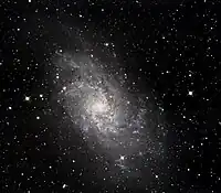 Trekantgalaksen - M33 (objekt nr. 33 i Messiers katalog), NGC 598 (objekt nr. 598 i New General Catalogue) - er den tredjestørste galakse i den lokale galaksehob og med en afstand på ca. 3 mio lysår. M33 er en spiralgalakse ligesom Mælkevejen med en diameter på 50.000 lysår, hvilket er det halve af Mælkevejens.