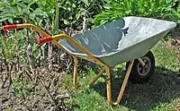 Som oftest er hjulet næsten ude i den ene ende af rammen, og i den anden ende er der to håndtag, hvor man tager fat og løfter og skubber vognen foran sig. Når man sætter vognen, er der normalt to støtteben foran håndtagene, så ladbunden kommer til at stå nogenlunde vandret.
