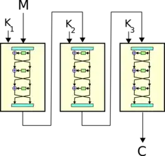 | Nøglestørrelse(r) | 168, 112 eller 56 bits (Afhængig af "Keying option" 1, 2, 3) | ||