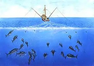 En tegners fremstilling af trolling efter tun.