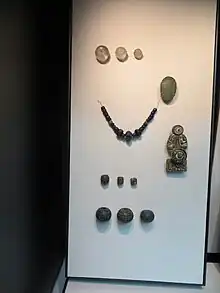 Fundet består af forskellige smykker, der er fremstillet i forskellige dele af Europa. To brocher er typisk skandinaviske i design, men har mønstrede millefioriglasperler importeret fra frankiske kongeriger. En oval vikingebroche er dekoreret med et komplekst indlagt mønster og en form for dyr, der krydser bagbenene. Andre genstande inkluderer en forgyldt kobberbroche, tre typer bjergkystal-perler, en tenvægt og en halskæde der består af 22 glasperler.