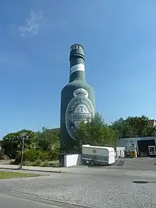 Efter udstillingen blev flasken opstillet ved Tuborg tæt på hjørnet af Carolinevej og Strandvejen – nu dog uden elevator. Det kostede fem øre at opleve flasken indefra, men hvis man bagefter nød et glas øl i Tuborgpavillonen, fik man femøren tilbage. Denne pavillon blev åbnet af Tuborg i 1880'erne. Det blev et populært sted, hvor man kunne få hestene vandet og samtidig nyde en kold forfriskning. Pavillonen blev derfor et søgt udskænkningssted og desuden kendt for god mad. I 1925 lukkede pavillonen, for Strandvejens øvrige restauratører var trætte af konkurrencen fra deres egen ølleverandør. Pavillonen blev revet ned i 1934.