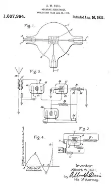 - elprocus.com: What is Dynatron Oscillator: Working and Its Applications Citat: "...In that dynatron oscillator is one of the oscillators which shows a negative resistance characteristic...It is invented by Albert Hull in the year of 1918...The negative resistance effect of the tetrode tube cancels the positive resistance of the tuned circuit. Therefore the tuned circuit will have zero resistance. So, the oscillating voltage at the resonant frequency will be generated...Dynatron oscillator...wide operating frequency range. In the Second World War, these were used in many applications...", backup