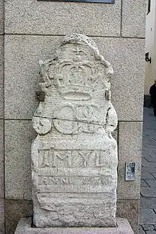 Udenfor Tunneln, i hjørnet mellem Kansligatan og Adelgatan, opsattes i 1676 en stadig eksisterende milesten. På stenen er indhugget en krone og bokstaverne CRS (Carolus Rex Suecorum). Det mærklige med stenen er att teksten angiver afstanden ”1 Myl” hvilket strider mod opfattelsen at stenen har tjent som udgangspunkt for aafstandsmålingen i länet i slutningen af 1600-tallet.