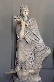 Tyche er i den græske mytologi velstandens og lykkens gudinde. Tyche fik endvidere status som heldets, tilfældets og skæbnens gudinde. Under hellenismen udviklede de enkelte bystater deres egen ikoniske version of Tyche som byens beskytter, ofte afbildet med en krone bestående af bymuren.