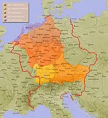 De to højfrankiske dialekter er østfrankisk tysk og sydfrankisk tysk.