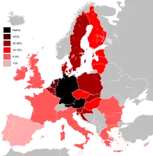 Det er hovedsprog for omkring 90–95 millioner mennesker i Europa (pr. 2004), eller 13,3% af alle europæere, og er dermed det næstmest talte modersmål i Europa efter russisk og over fransk (66,5 millioner talere i 2004) og engelsk (64,2 millioner talere i 2004). Det er dermed også det mest talte modersmål i EU. Det er det næstmest kendte fremmedsprog i EU.[34] Det er et af de tre arbejdssprog for Europa Kommissionen sammen med engelsk og fransk. 32 % af befolkningen i EU-15-landene siger, at de kan konversere på tysk (enten som modersmål eller fremmedsprog).[35] Dette er blevet hjulpet på vej af den udbredte dækning af tysk tv via kabel-tv eller satellit.