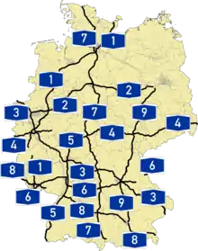 | Skilt | Navn | Strækning | Forbundslande langs strækningen | Længde (km) |