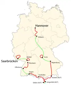 Løbet startede i Saarbrücken for at markere Saarlands 50-års jubilæum som tysk delstat. Traditionen tro fortsatte løbet ind i Østrig. Rytterne tilbagelagte 1 292.5 km før mål i Hannover den 18. august.