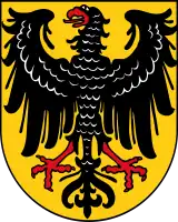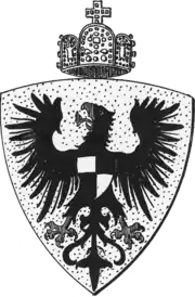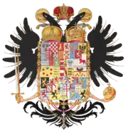 | Kejser Frederik den smukkes våben som konge af Tyskland i 1446. | Det Tysk-Romerske Riges våben i et manuskript. | Josef II's våben (1765). | Den sidste Tysk-Romerske kejser Frans II's våben |