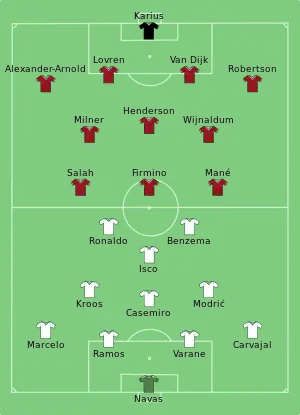 - "Tactical Line-ups – Final – Saturday 26 May 2018" (PDF). UEFA.com. Union of European Football Associations. 26. maj 2018. Hentet 26. maj 2018.