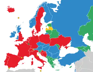 Kort, der viser, hvilket niveau holdene spillede i. League A League B League C League D