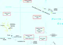 Kort med beliggenheden af øerne i Stillehavet (markerede med røde bokse).