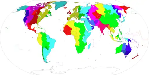 UTC−03: Primært de lyseblå i Sydamerika og nord herfor.