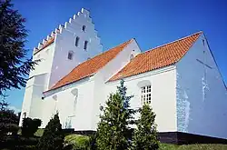 Kirken er i sin kerne et romansk bygningsværk rejst i en blanding af tegl, kampesten og enkelte granitkvadre.[2] Denne kirke er nu kun bevaret i dele af korets og skibets sydside samt i skibets nordvesthjørne. Desuden er et enkelt af tagkonstruktionens spær dendrokronologisk blevet dateret til o. 1243 og kan stamme fra kirkens første tagværk.[3]