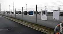 En fotoudstilling på et hegn i Ystad havn 2021.