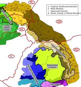 Ydre østlige Karpater, omkranset i rødt og markeret 4