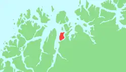 ![]() Fra Rotsund på fastlandet mod Havnnes på Uløya | |