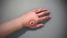 Et sår (Ulcus) på hånden