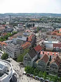 Udsigt fra Domkirken i Ulm mod Hirschstrasse.