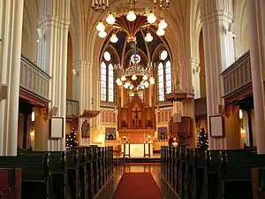 Kirken blev tegnet af den daværende stadsarkitekt Fredrik Olaus Lindström og er opført i mursten med et stenfundament. Kirken blev opført mellem 1892 og 1894, og er den tredje i rækken af kirker der har stået på det samme sted. Tre renoveringer med tilføjelser til bygningen har gradvist ændret kirkens oprindelige udseende.