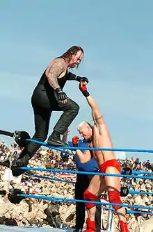 Undertaker udøver manøvren «Old School» på modstanderen Heidenreich.