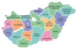 Ungarn er delt op i syv regioner (megyék), som er underinddelt i 20 administrative enheder, herunder 19 provinser og derudover Budapest kommune, som anses som sin egen region (ikke officielt), hvilket ville bringe antallet af regioner op på otte ved en deling af provinsen Pest.