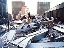 Nogle vragdele fra flyet blev fundet i nærheden, herunder et landingstel, som blev fundet på toppen af en anden bygning. Flyets motor blev fundet på Church & Murray Street, og en del af flyets skrog landede på toppen af World Trade Center tårn 5.