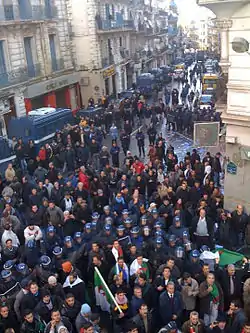 Der har været undtagelsestilstand i Algeriet siden en islamist revolution, der i 1992 kostede titusinder af menneskeliv. Demonstrationer har ellers været forbudt i Algeriet siden 1992. [1][2][3][4]
