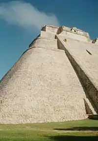 - Adivino'en eller "Troldmandens Pyramide", er et flot pyramidetempel, som på flere måder er usædvanligt. Trinpyramidens enkelte lag er ovale i modsætning til den almindelige rektangulære eller kvadratiske form. I Mesoamerika var det almindeligt at bygge nye tempelpyramider ovenpå ældre pyramider, men her blev en ny pyramide bygget lidt mod øst i forhold til den gamle, så vestsiden af templet ovenpå den gamle pyramide er bevaret med det nyere tempel over det.