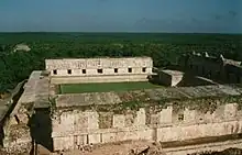 - Guvernørens Palads, en lang, lav bygning ovenpå en kæmpestor platform, med den længste facade i det præ-columbianske Mesoamerika.