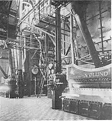I starten produceredes fortrinsvis opvarmningsanlæg og dampvaskerianlæg, bl.a. til (det gamle) Rigshospitalet, der blev opført 1905-10 ved Martin Borch (siden nedrevet). I 1910 begyndte man at fremstille råoliemotorer til fremdrivning af mindre skibe, i 1923 damptromler, og i 1925 udførtes jernkonstruktionen til Forum København. I 1928 byggede Vølund den gamle Langebro (saboteret under Besættelsen), og omkring 1930 leveredes store dampkedelanlæg til H.C. Ørstedsværket og bryggeriet Tuborg i Hellerup. Også i 1930 stod man for stålskelettet til kontorhuset Vesterport af Ole Falkentorp og Povl Baumann, som i dag ejes af Nordea, men som i mange år bl.a. husede udstillingen Den Permanente. De gamle vogne i Rutchebanen på Dyrehavsbakken blev bygget hos Vølund 1932, de blev først 2010 skiftet ud med nye vogntog.