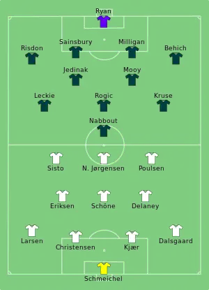 - "Tactical Line-up – Group C – Denmark-Australia" (PDF). FIFA.com. Fédération Internationale de Football Association. 21. juni 2018. Hentet 21. juni 2018.