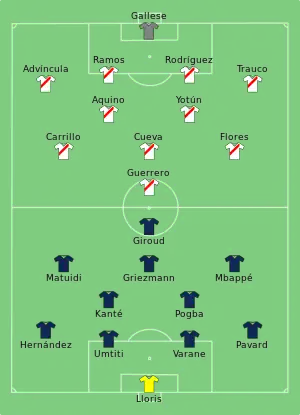 - "Tactical Line-up – Group C – France-Peru" (PDF). FIFA.com. Fédération Internationale de Football Association. 21. juni 2018. Hentet 21. juni 2018.