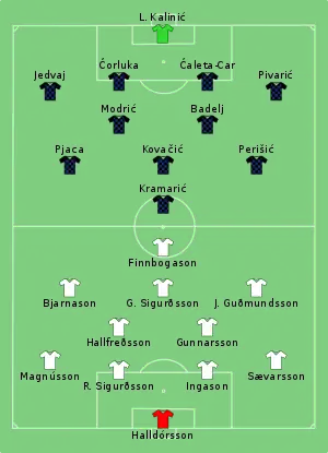 - "Tactical Line-up – Group D – Iceland v Croatia" (PDF). FIFA.com. Fédération Internationale de Football Association. 26. juni 2018. Hentet 26. juni 2018.
