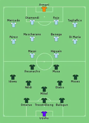 - "Tactical Line-up – Group D – Nigeria v Argentina" (PDF). FIFA.com. Fédération Internationale de Football Association. 26. juni 2018. Hentet 26. juni 2018.