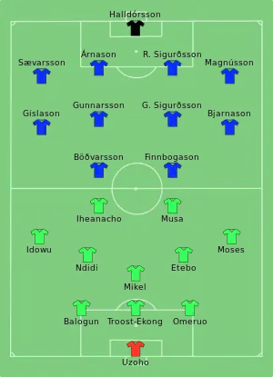 - "Tactical Line-up – Group D – Nigeria-Iceland" (PDF). FIFA.com. Fédération Internationale de Football Association. 22. juni 2018. Hentet 22. juni 2018.